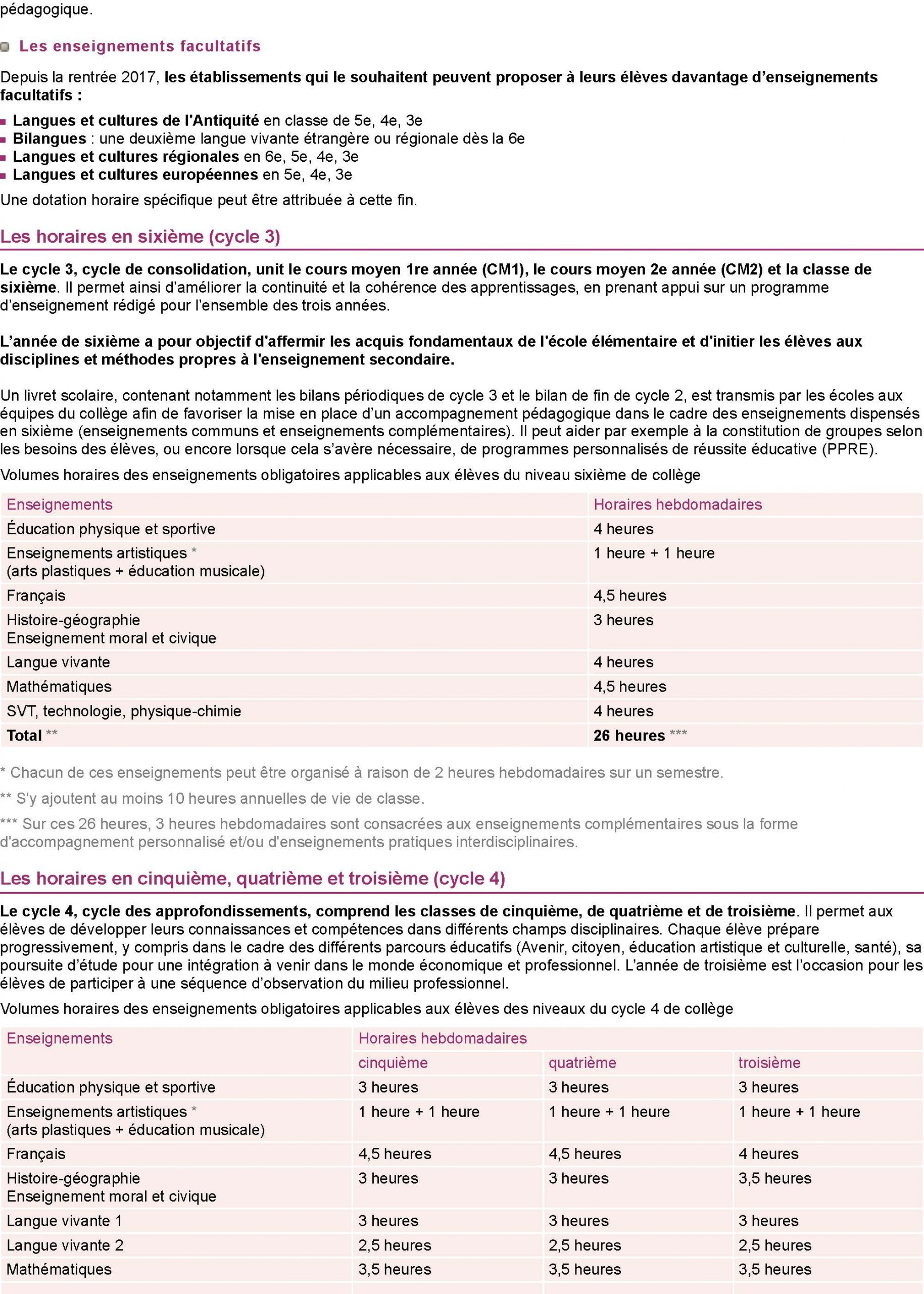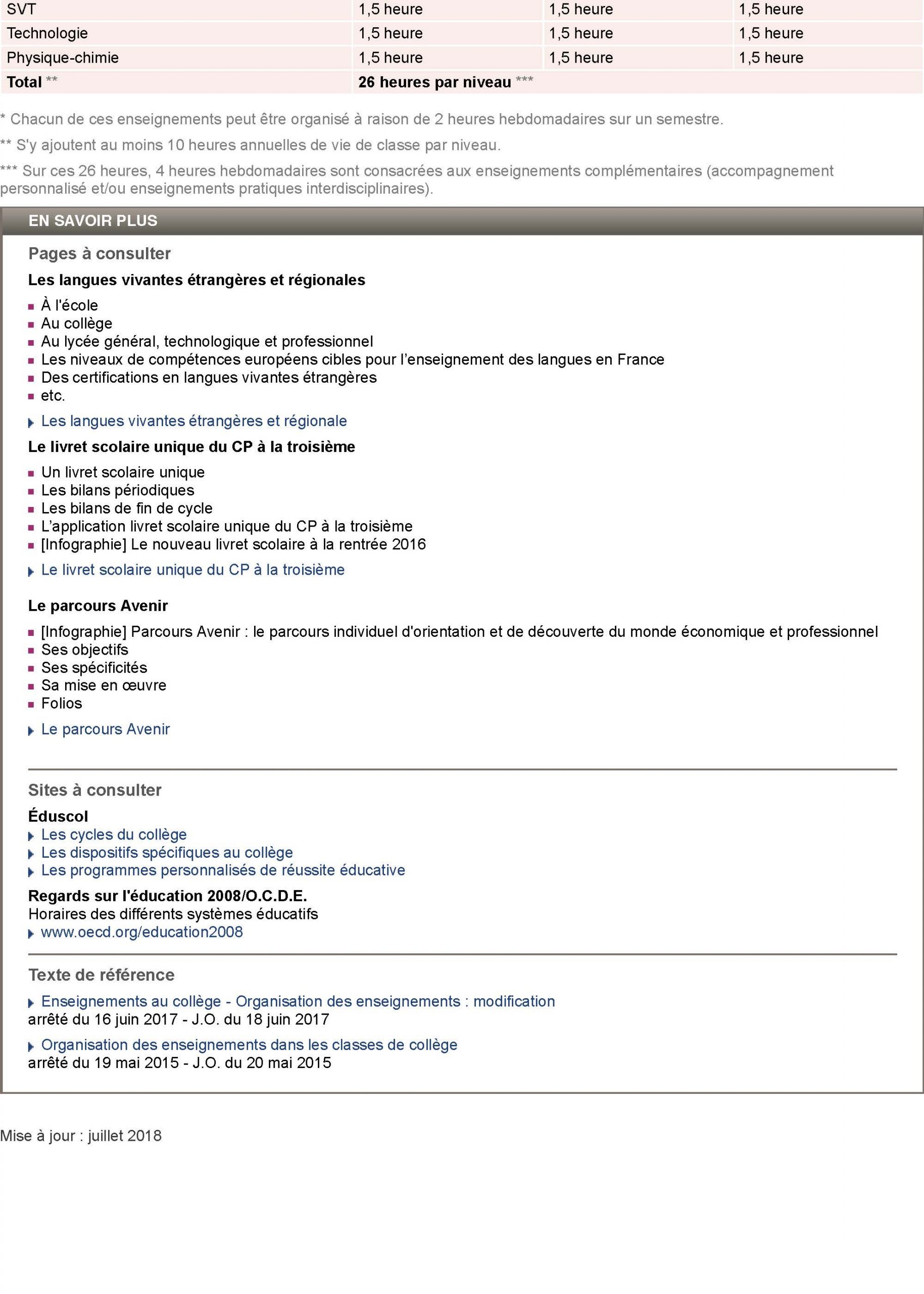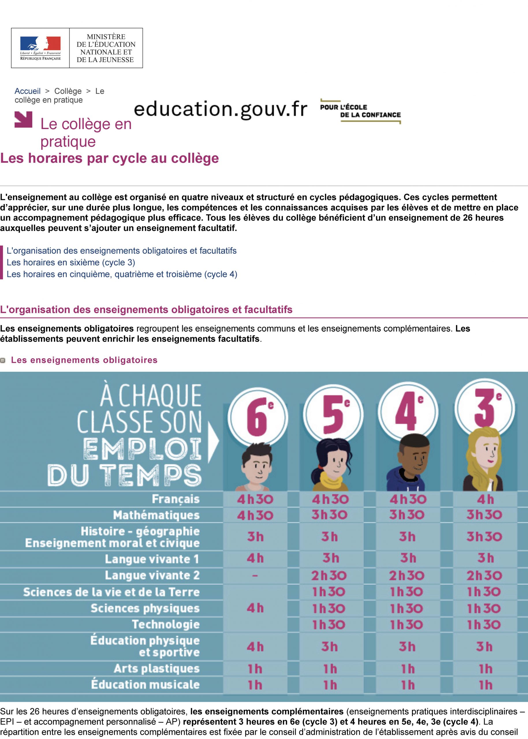 Vous trouverez ci-dessous les modalités d’organisation et les horaires en collège suite à la réforme de 2016.