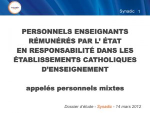 PERSONNELS ENSEIGNANTS RÉMUNÉRÉS PAR L’ ÉTAT EN RESPONSABILITÉ DANS LES ÉTABLISSEMENTS CATHOLIQUES D’ENSEIGNEMENT appelés personnels mixtes